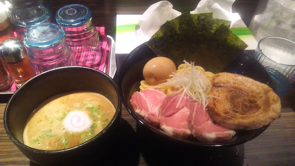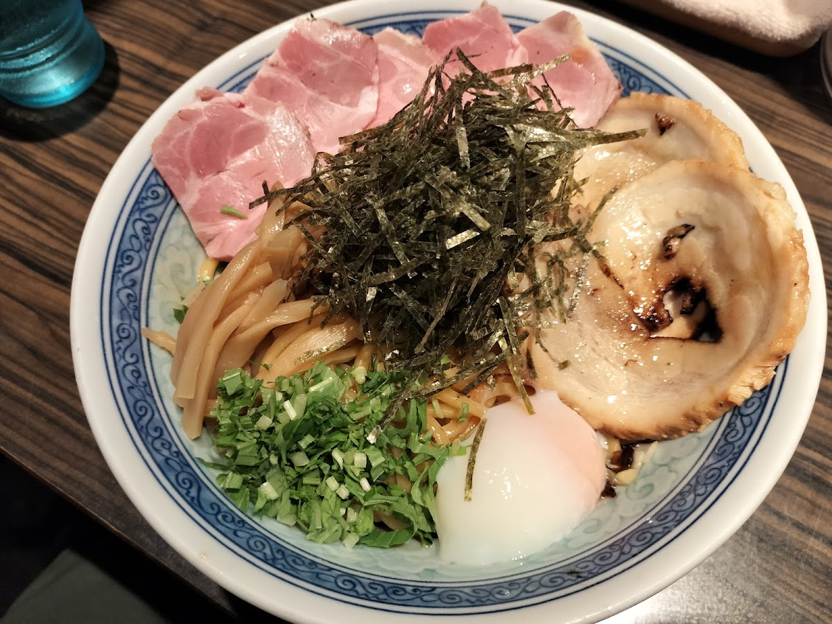 One of the restaurant's unique features is its 三ヶ月前撮影のまぜそば ちゃーしゅー 味玉トッピング (Three-Month Old Mixed Noodles with Chashu and Egg Toppings). This dish has garnered attention for its rich flavors and appealing presentation. It pairs beautifully with the house-made 沾麵 醬汁 (Dipping Sauce), which enhances the depth of flavor with every bite. Additionally, the 和え玉 (Aedama) offers a delicious side dish option, making it a perfect choice for those craving variety.